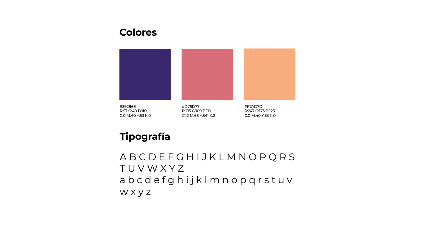 Para la tipografía usamos la tipografía Montserrat. Se caracteríza por sus formas geométricas y la amplitud de sus formas, transmite modernidad, sencillez y orden.